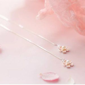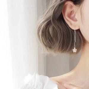 14k Gold Flower Long Chain Threader Earrings Sterling Silver