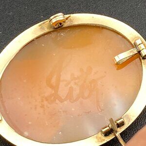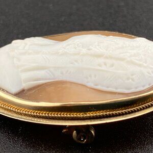 14k Gold Left Facing 1.49" Hand Carved Cameo Brooch Pin Pendant Authentic 6.7gm