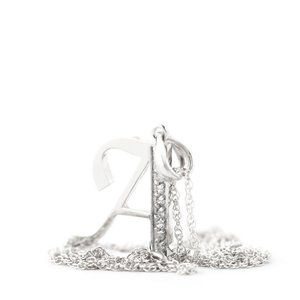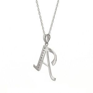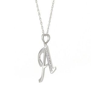14K. SOLID GOLD NECKLACE WITH NATURAL DIAMONDS INITIAL 'A' PENDANT (White Gold)