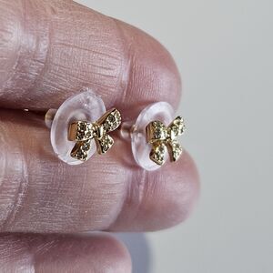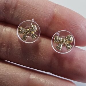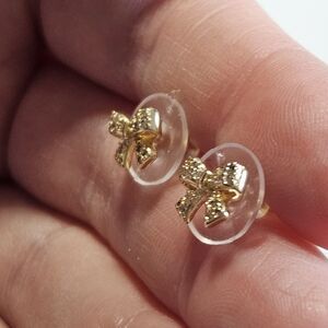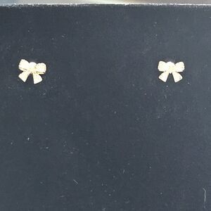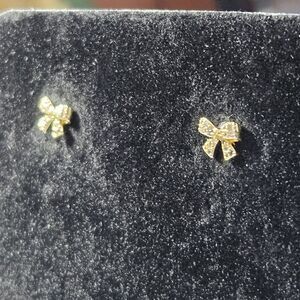 14k Gold Over Sterling Dainty Bow Rhinestone Earrings
