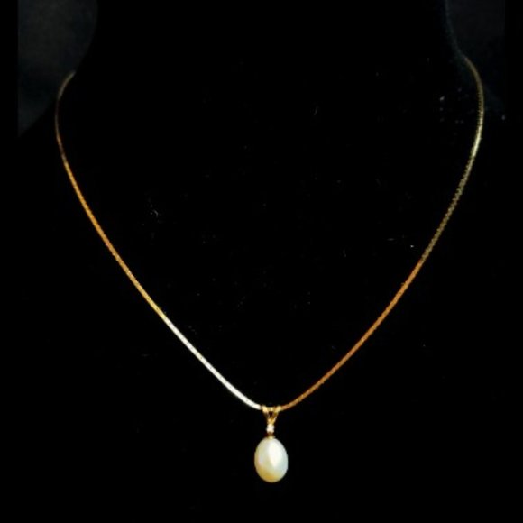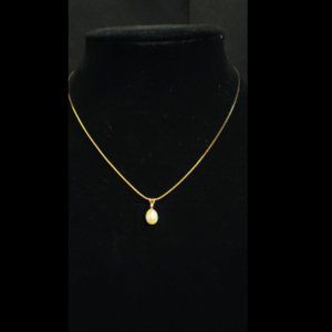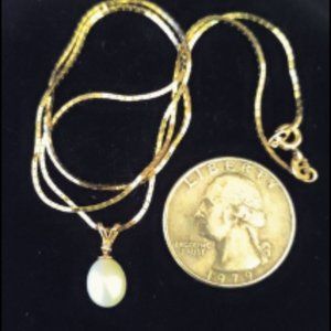 Beautiful 14K Gold Pearl and Diamond Pendant with Box Chain Necklace 16". Stamped 14k on pendant & chain. In good condition, see photos!