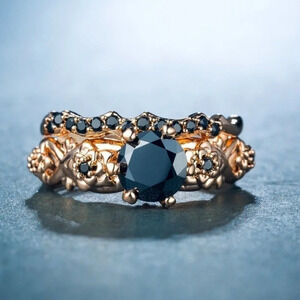 🍂 14k Gold Plated 🖤Black CZ Wedding Ring for Women, FB16FA1127