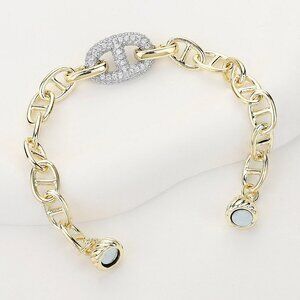 14k Gold Plated CZ Stone Mariner Link Magnetic Bracelet