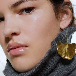 14k Gold Plated Ginkgo Leaf Style Drop Earrings