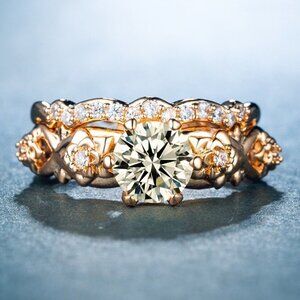 "14k Gold Plated Olive Green CZ Wedding Ring for Women, FB16FA1126