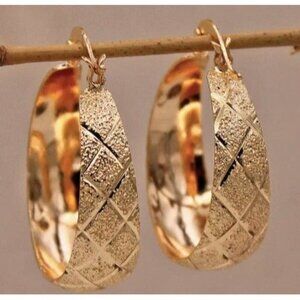 14k Gold Plated Rhombus Pattern Hoop Earrings