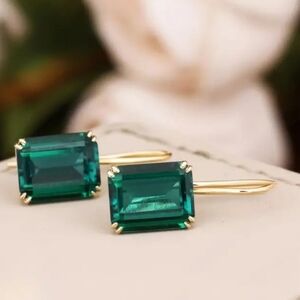 Elevate your style with these stunning 14k Gold Plated Synthetic Emerald Earrings. Perfectly crafted for those who appreciate elegance and sophistication, these earrings feature beautifully cut synthetic emeralds that shimmer with every movement.