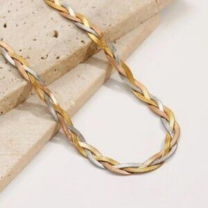 14k Gold Plated Tri-Colored Braided Snake Chain Stainless Steel Necklace