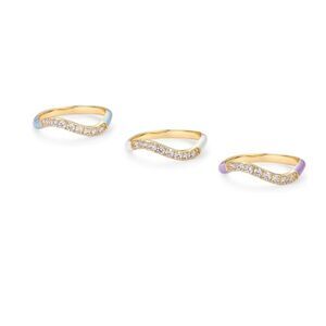This ring features a trendy wave design, measuring 5.5mm in width and 2.2mm in thickness, adorned with 8 pieces of premium 2mm AAAAA cubic zirconia. Its unique form, offered in an array of chic and vivid colors, captures the essence of modern elegance, making it an ideal accessory for women seeking to add a touch of sophistication and a pop of color to their outfit.