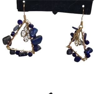 14k Gold Plated lapis lazuli Butterfly Triangle Earrings