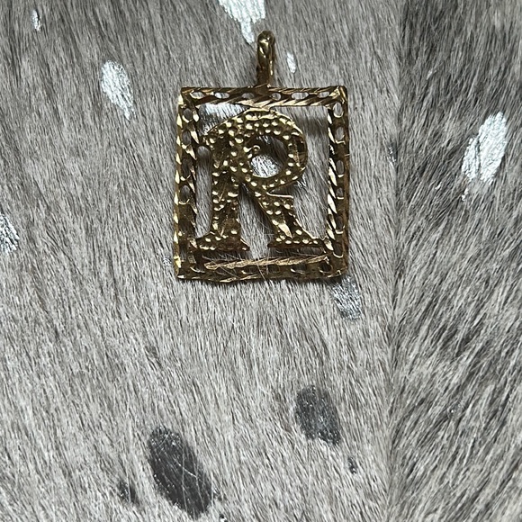 14k gold R pendant