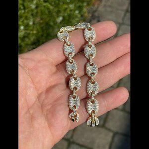 14k Gold Real 925 Sterling Silver Mens Iced Puffed Gucci Link Bracelet Diamond