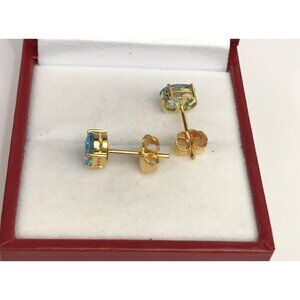 new without tags: good condition: "like new" 14k solid yellow gold solitaire - one stone stud earrings, natural blue topaz.