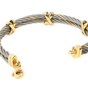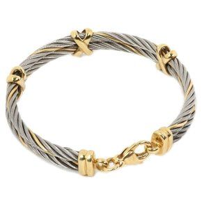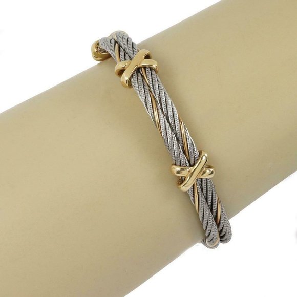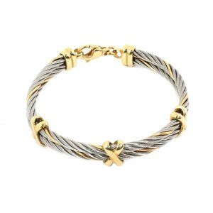 14k Gold Steel Double Cable Wire X Design Bracelet
