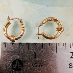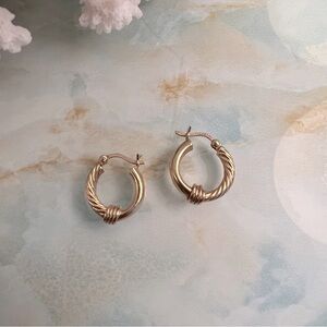 EUC 14k gold pierced earrings from. Classic twist rope with a sort of wrapped knot and smooth at back. Marked A 595
