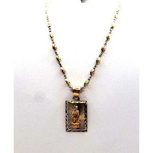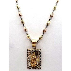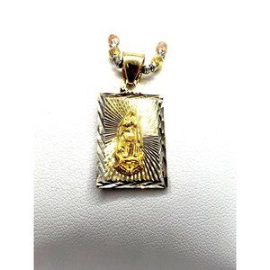 14k Gold Two Tone Virgen De Guadalupe, Our Lady of Guadalupe Square Medal Penda