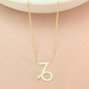 14k Gold Vermeil Capricorn Zodiac CZ Necklace