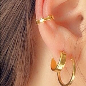 Crafted with precision, this textured cuff adds a touch of edgy sophistication to any ensemble. Designed for effortless stacking, it complements your existing jewelry collection, offering versatility for various occasions. This petite, timeless earring is perfect as an everyday earring or for adding a bit of flair with a layered ear stack. Enjoy the convenience of piercing-free earrings without compromising on style. Our hypoallergenic, nickel-free material ensures comfort, ideal for sensitive skin. Each tiny ear cuff is carefully e-coated and responsibly sourced, reflecting our commitment to quality and sustainability. Delivered in a plush velvet bag, it makes a thoughtful gift. Experience affordable luxury and redefine your style with our versatile cuff earring. Unlock endless styling possibilities and embrace simplicity with our 14K Gold Vermeil Dainty Ear Cuff.