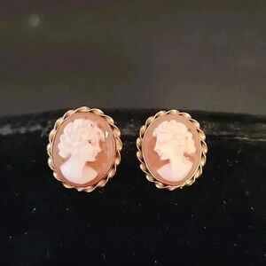 Stud Style Carved shell Cameo Earrings. Marked on the back .585 for 14k Gold.