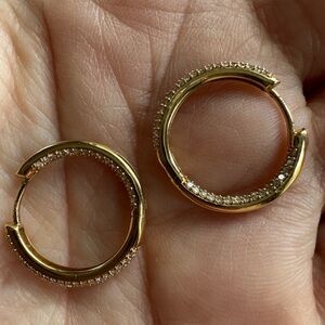 These stunning earrings feature 14k gold and are lined in diamonds both on the front and the inside so that you see diamonds from every angle.