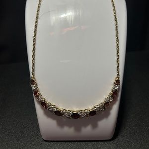 14k Gold plate over 925 Sterling Silver Garnet and Diamond Necklace