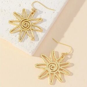Elegant gold sunburst earrings with a spiral design. Perfect for adding a touch of shine to any outfit.