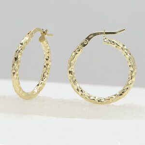 14k Hoops 3/4' inch Diamond cut Design Yellow Gold Hoops