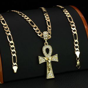 14k Jesus Ankh Cross + Pendant 5mm 20" Necklace