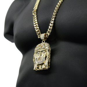 14k Jesus Huge Pendant 30" 10mm Necklace