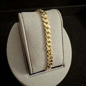 The bracelet is 7 inches in length and has a total carat weight of 0.40ctw of lab-created white/colorless Moissanite stones. The gold chain is crafted in solid 14k yellow gold with a total weight of 6.39 grams, making it a stylish and luxurious accessory for any occasion. Made in Italy, this new piece of fine jewelry exudes elegance and sophistication with its sophisticated design and high-quality materials. Retail price $2500.00!