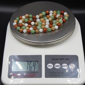 The necklace consists of 84 natural multicolor jadeite stones that are approximately 8mm (1.90 cts) each, totaling 159.6 carats.