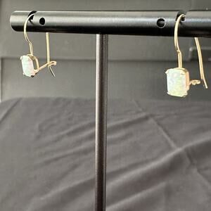 These graceful dangle earrings pair the quiet glow of 14-karat gold with the natural magic of opals. Each stone reveals a mesmerizing play of color—flashes of emerald green, hints of golden yellow, and soft glimmers of sky blue, like sunlight flickering on the Seine.