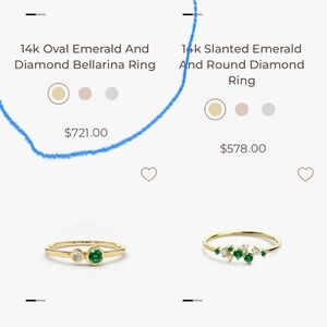 Size 7, 14k gold emerald and diamond ring - all real, from Ferko’s website. Worn a few times for high end events. Beautiful and dainty in person. Love Ferko’s jewelry, well made and lasts forever - just looking to change up some of my pieces!