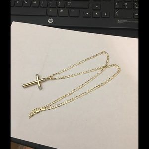 Beautiful 14k Solid Gold Figaro Link Chain with Cross