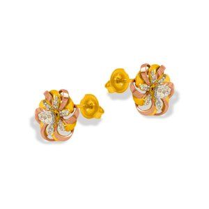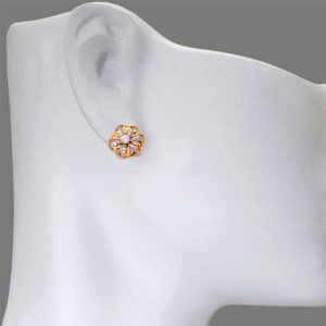 14k REAL GOLD Fancy Flower Stud CZ Earrings 12MM
