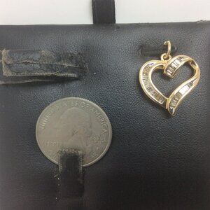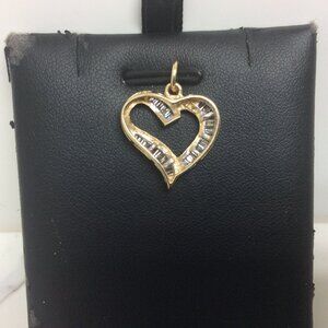 14k Real Solid Gold Real Baguette Diamond Heart Charm Pendant 2.80gr .45ct