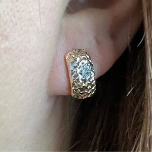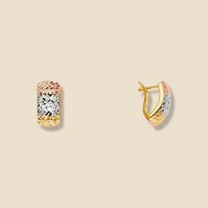 Discover the beauty of simplicity with our Precious Handmade 14K Solid Gold Tri Color Huggies Earrings, weighing approximately 1.5 grams.