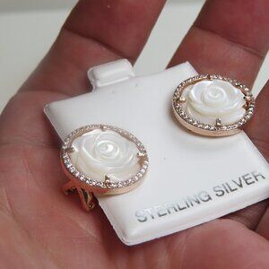 14k Rose Gold Diamond Pearl Flower Earring