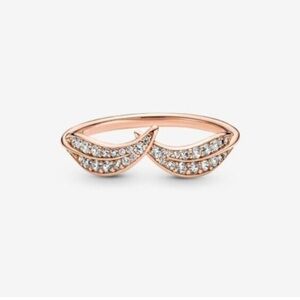 New Pandora 14k Rose Gold Plated Sparkling CZ Leaves Ring Size 4.5 (48) MET ALE