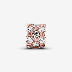 Sparkle in style with this shimmering Pink & Clear Sparkle Charm. Hand-finished in 14k rose gold plating, this piece adds pizzazz to your charm collection with its fancy fairy tale pink and clear cubic zirconia set in alternating sizes. Thread the charm on your favourite Pandora Moments bracelet, give it pride of place on the Pandora O Pendant or gift it to someone that lights up your days.