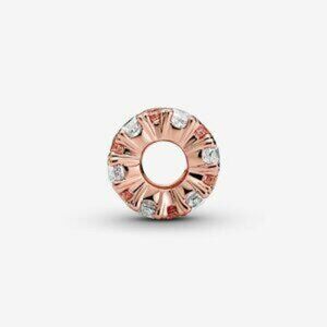 Sparkle in style with this shimmering Pink & Clear Sparkle Charm. Hand-finished in 14k rose gold plating, this piece adds pizzazz to your charm collection with its fancy fairy tale pink and clear cubic zirconia set in alternating sizes. Thread the charm on your favourite Pandora Moments bracelet, give it pride of place on the Pandora O Pendant or gift it to someone that lights up your days.