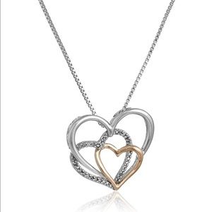 Sterling Silver, 14k Rose Gold, and Diamond Triple Heart Pendant Necklace (.09 cttw, I-J Color, I2-I3 Clarity), 18"