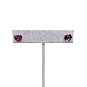 14k Solid Gold 8x8mm Heart Shaped Amethyst Stud Earrings