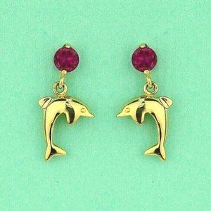 14k Solid Gold Dolphin Screw Back Stud Earring with Sparkling Birthstone