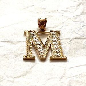 14k Solid Gold Initial M pendant | Initial Necklace | Initial letter Charm |