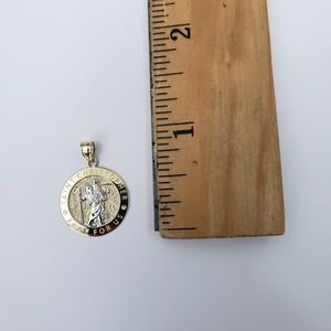 Discover the protective embrace of the solid gold Saint Christopher pendant. Representing the patron saint of travelers, this pendant serves as a meaningful talisman for journeys near and far. Whether embarking on a new adventure, starting a new chapter in life, or simply seeking guidance and protection, this pendant holds significance for anyone seeking safe travels and blessings. It is a thoughtful gift for loved ones embarking on trips, commencing new ventures, or going through important life transitions. With its timeless design and enduring symbolism, the solid gold Saint Christopher pendant is a cherished keepsake that accompanies you on every path you take.