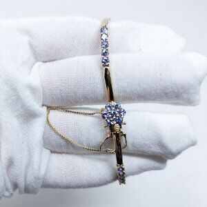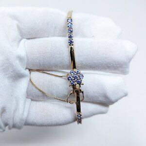14k Solid Gold Vintage Tanzanite Bar and Flower Bracelet
