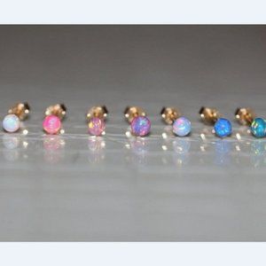 14k Solid White Gold Lab Created Synthetic Opal Fiery Pushback Studs Size 4mm