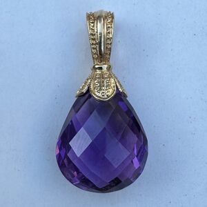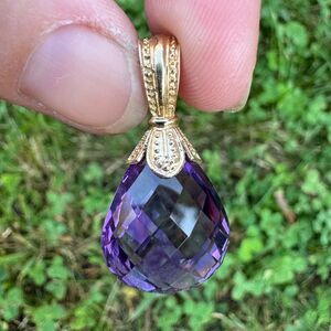 14k Solid Yellow Gold 10ct Briolette Cut Natural Amethyst Pendant Pearl Enhancer