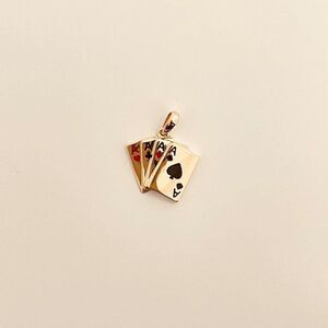 Precious Religious Aces necklace shaped 14K solid gold. This Aces necklace comes with a complimentary gold-plated chain. (17.5 inches long)